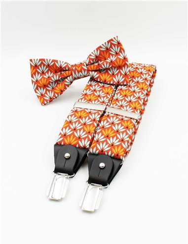 Conjunto de Tirantes y Pajarita a juego con elegante estampado floral, Tirante con una anchura de 35mm con tres pinzas color bronce que logran una gran sujeción al pantalón.