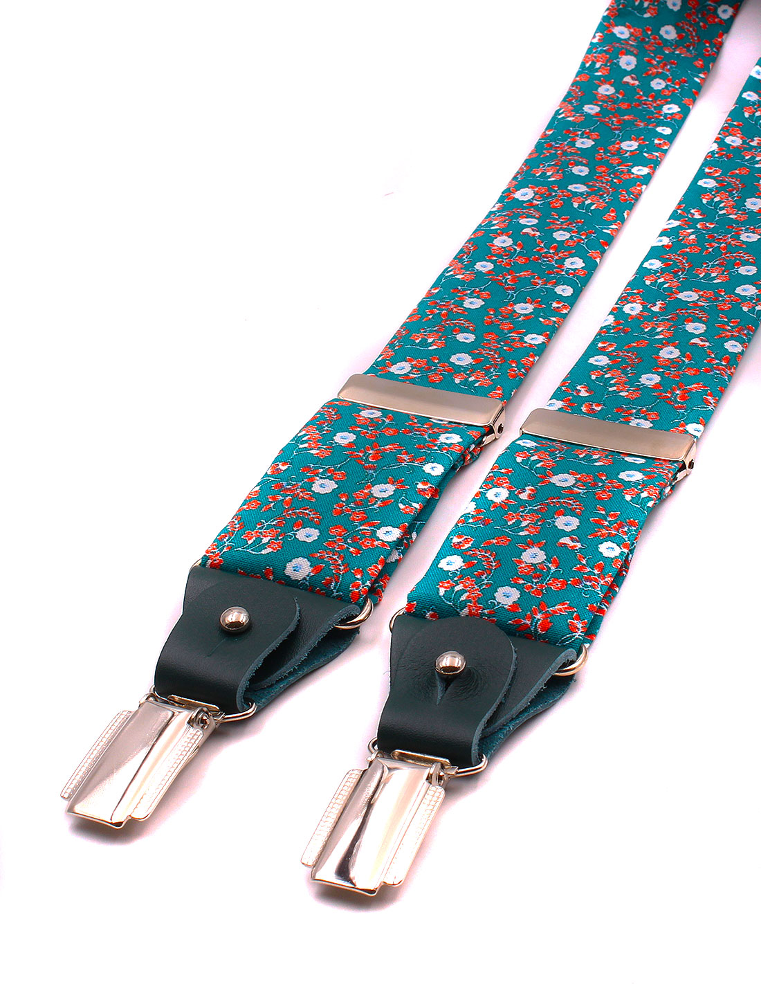 Tirantes de tela algodón 100% con elegante estampado floral de una anchura de 35mm, de tres pinzas en forma de Y que logra una gran sujeción al pantalón.