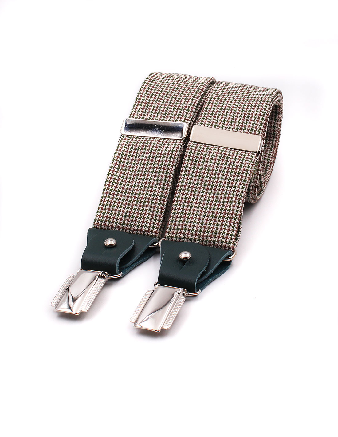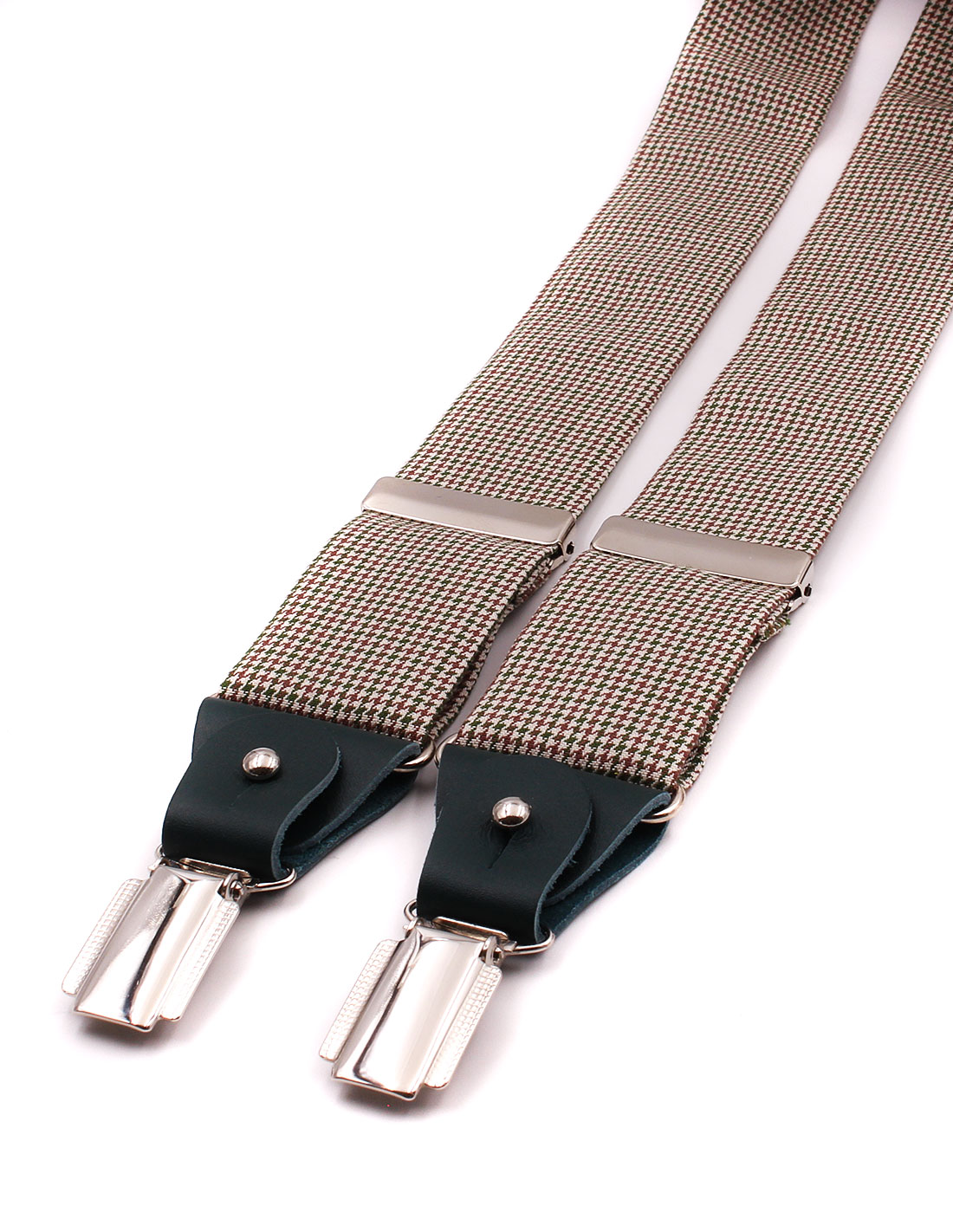 Tirantes de tela algodón 100% con elegante estampado pata de gallo de una anchura de 35mm, de tres pinzas en forma de Y que logra una gran sujeción al pantalón.